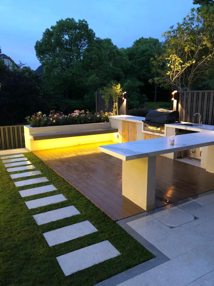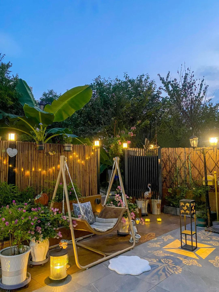 太阳落山后,院子不该沉入黑暗。灯光一点,气氛全变。不用太亮,暖黄色的串灯绕着篱笆或树干缠几圈,星星点点就够了。